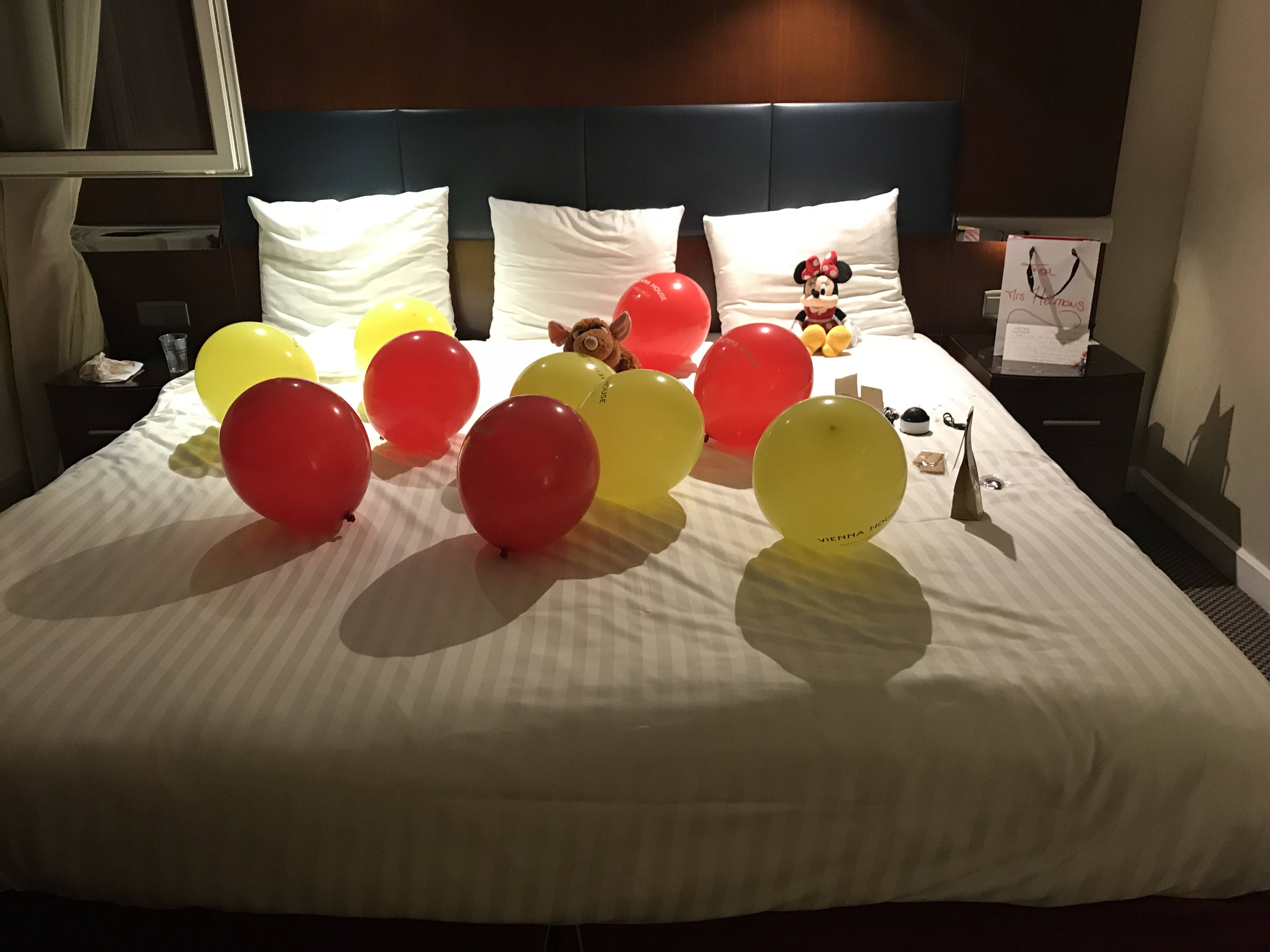 We genoten van de Stuntshow Moteurs Action, Ratatouille en de show Mickey and the Magician in het Walt Disney Studio’s park. In het Disneyland Park deden we de attracties Pirates of the Caribbean en Star Tours: l’avonture Continue, aten een ijsje in de buurt van It’s a Small World en zijn op ons gemak vroeg gaan dineren bij Agrabah Cafe. Veel gewandeld en massa’s mensen proberen te ontwijken, want het was erg druk. Ook konden we nog een glimp opvangen van de parade; het stuk dat meer dan 2 meter boven de vloer uitkwam dan. Als sluitstuk van deze enerverende verjaardag genoten we van de avondshow Illuminations met de projecties op het kasteel en het vuurwerk. Zo heb je een verjaardag om nooit te vergeten en toen we op de kamer kwamen lag het bed vol ballonnen en was er nog een attentie van het hotel.