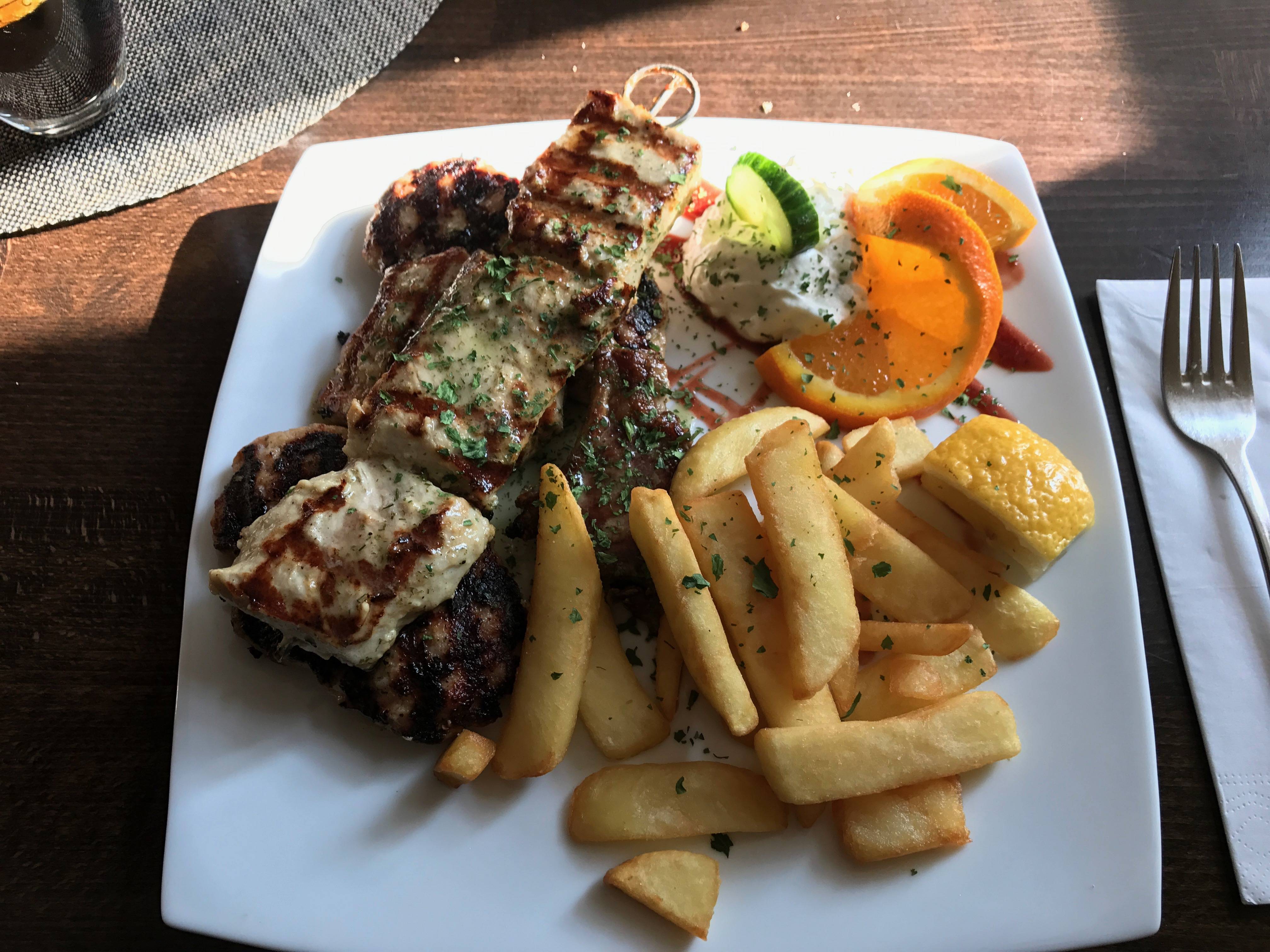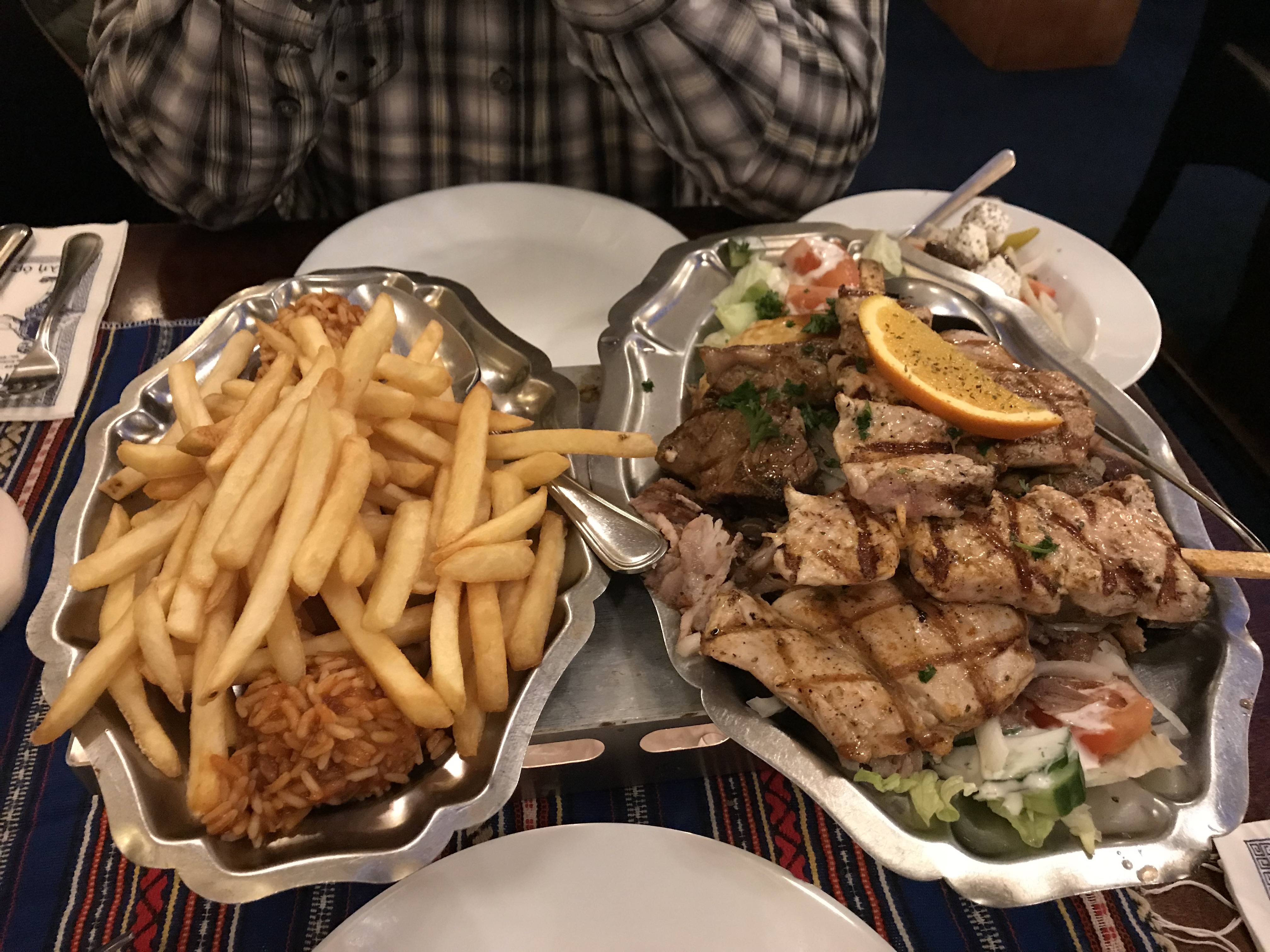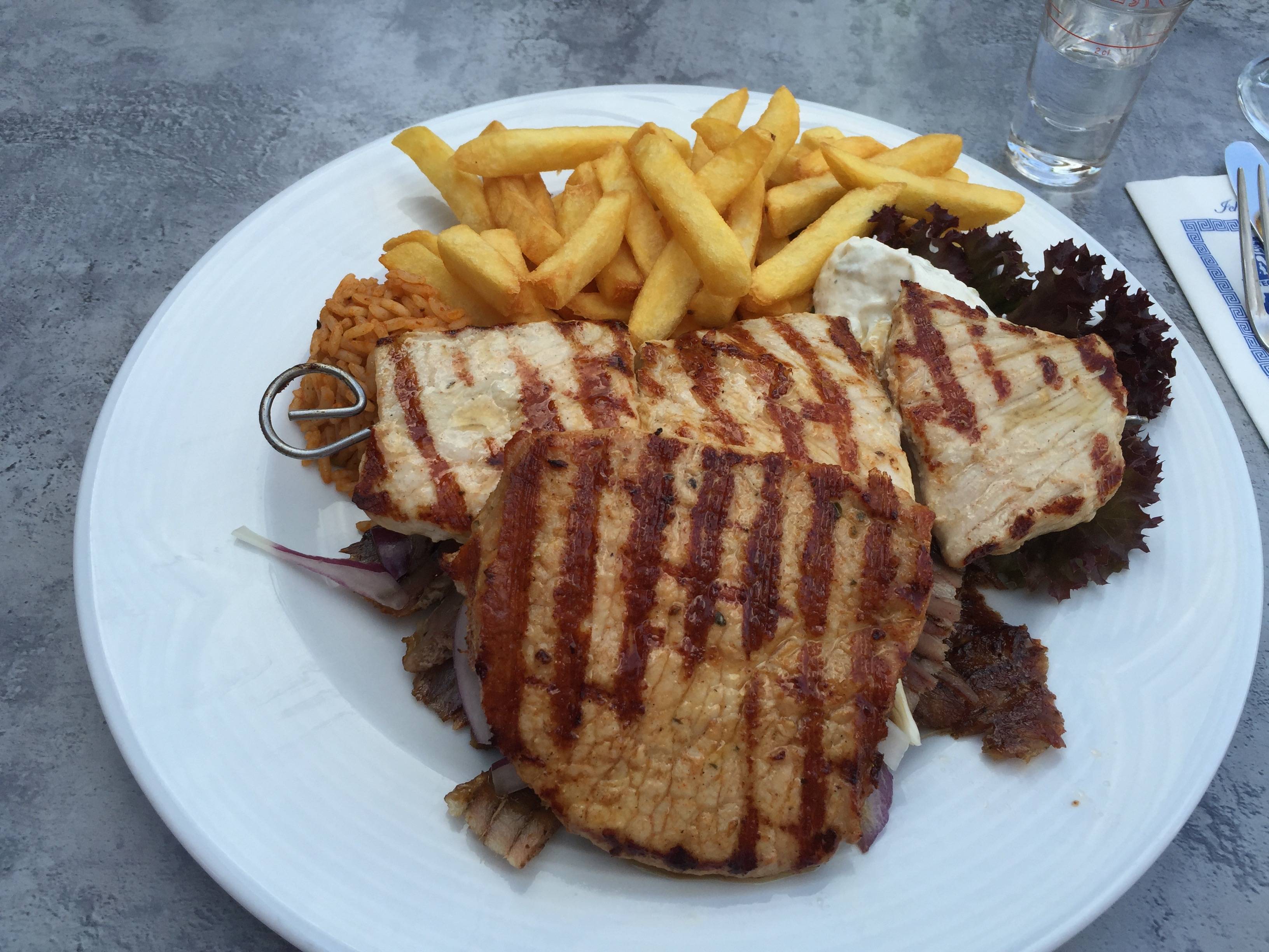 Kerkrade, Valkenburg, Bergen op Zoom, Wageningen, Roosendaal, Ede, Papendrecht, Dordrecht, Steenbergen, Den Haag en niet te vergeten Goes hebben we met enige regelmaat genoten van gerechten met gyros, saganaki, tiropita, tzatziki, souvlaki, sousuki, moussaka, baklava, lamskoteletjes enzzzz. De ene keer net wat lekkerder dan de andere keer, maar altijd gingen we voldaan naar huis.
