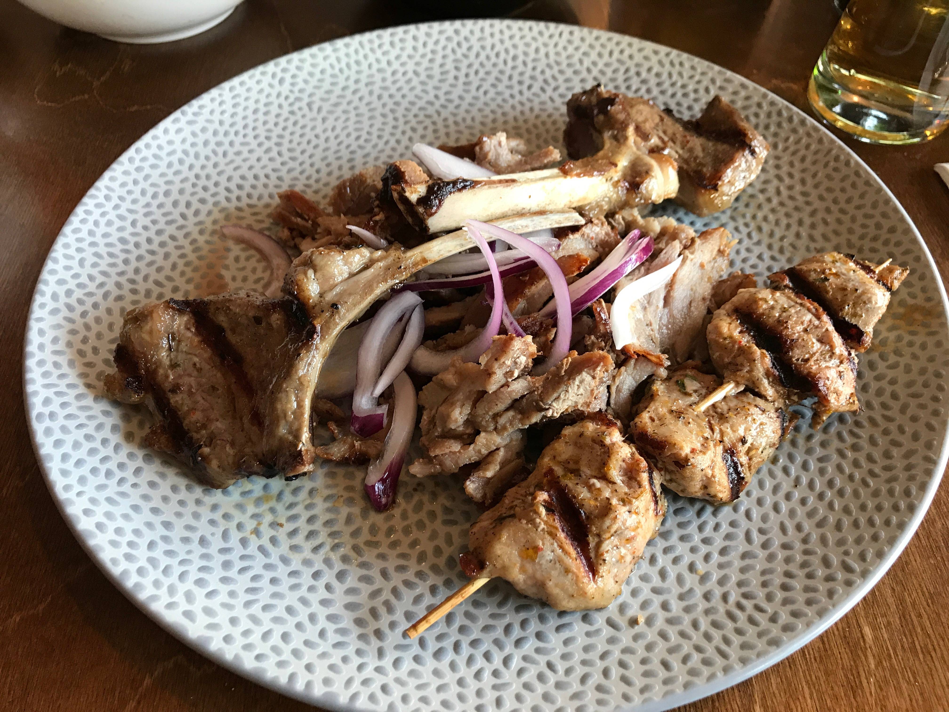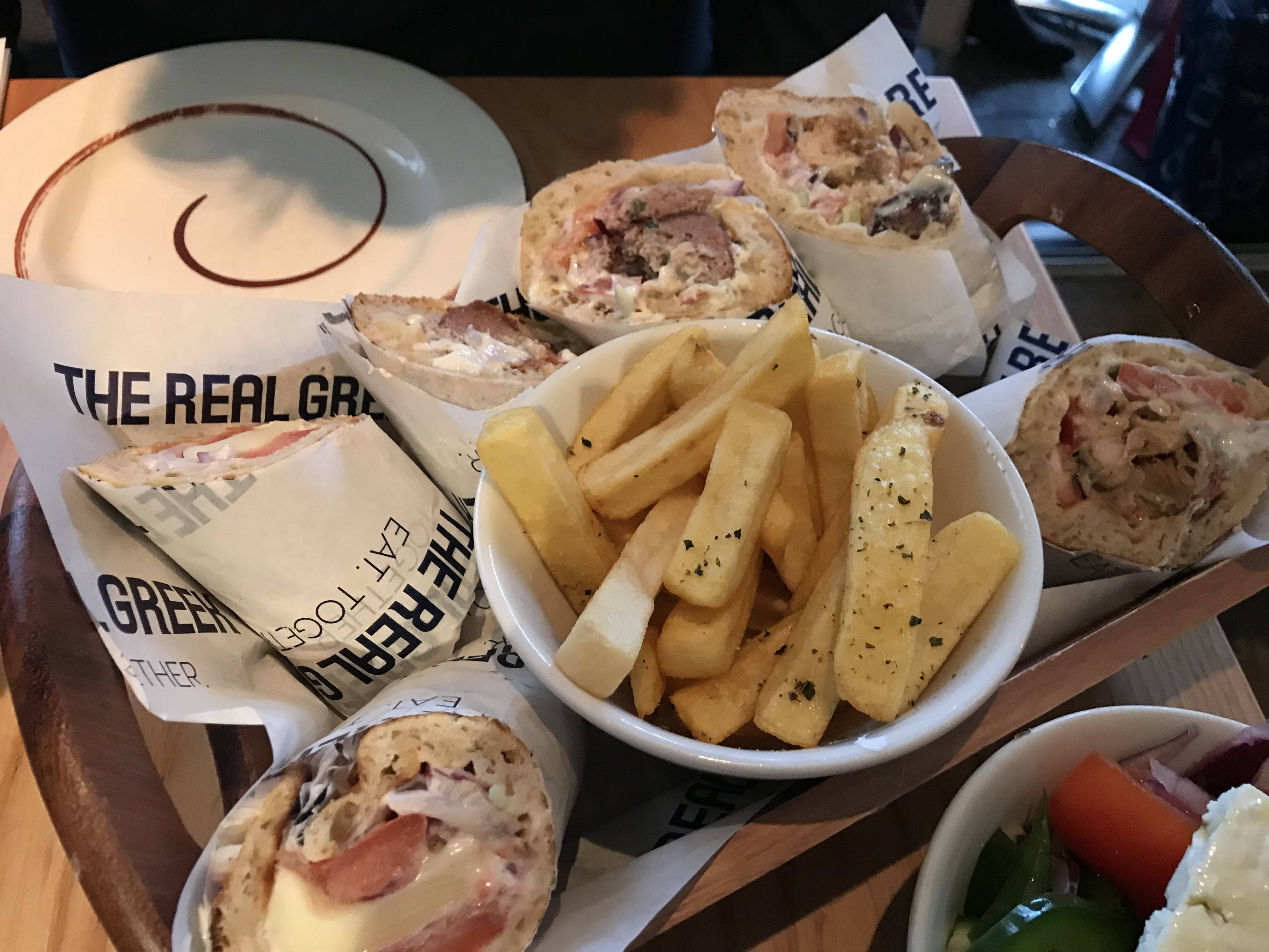 In Londen hebben we ook een adresje waar je heerlijk Grieks kunt eten. Het is leuk te zien dat elk land toch zijn eigen draai geeft aan het Griekse eten. Hier kregen we eens een etagère met allemaal kleinere gerechtjes en een andere keer kozen we voor een soort wraps.