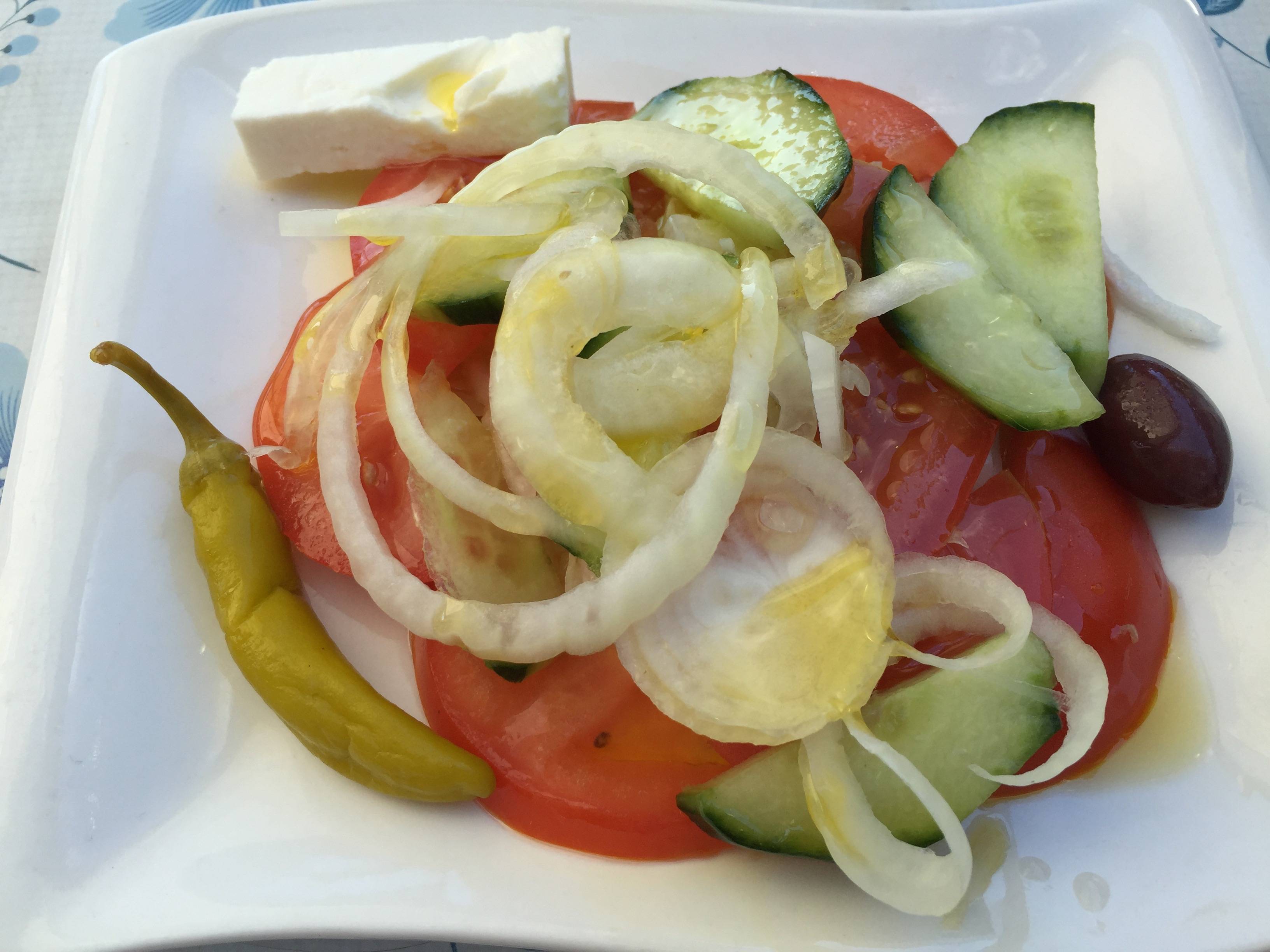 Wanneer we een reisje maken naar Duitsland “testen” we menig Grieks restaurant. Uit eten bij onze oosterburen staat bijna synoniem aan Grieks eten. Of het nu in het Ruhrgebied is, Berlijn, Beieren of het Zwarte Woud, wij vinden wel een Griek op ons pad. Het leuke in Duitsland is dat je vooraf vaak een bordje salade krijgt voorgezet. Je kunt de vitamientjes alvast maar binnen hebben toch?