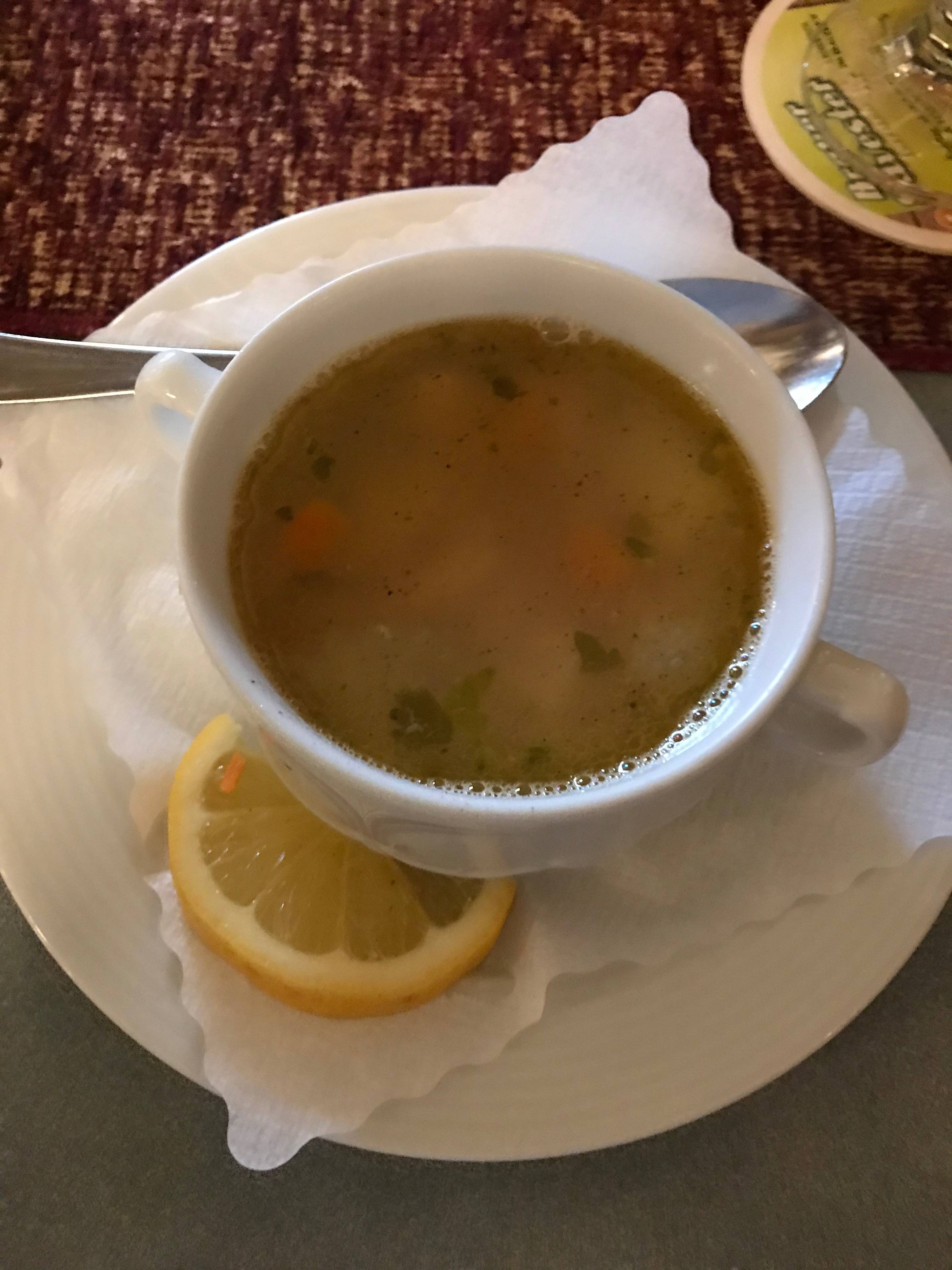 Veel van het eten zelf staat me niet meer bij, behalve dat we samen met een echtpaar elke avond gezellig op een terras aan een tafeltje zaten met daarop geruite kleedjes op oncomfortabele houten stoeltjes en dat een pas getrouwd stel koste wat het koste niet tezamen met anderen aan tafel wilden dineren, hetgeen door het personeel heel merkwaardig werd gevonden.