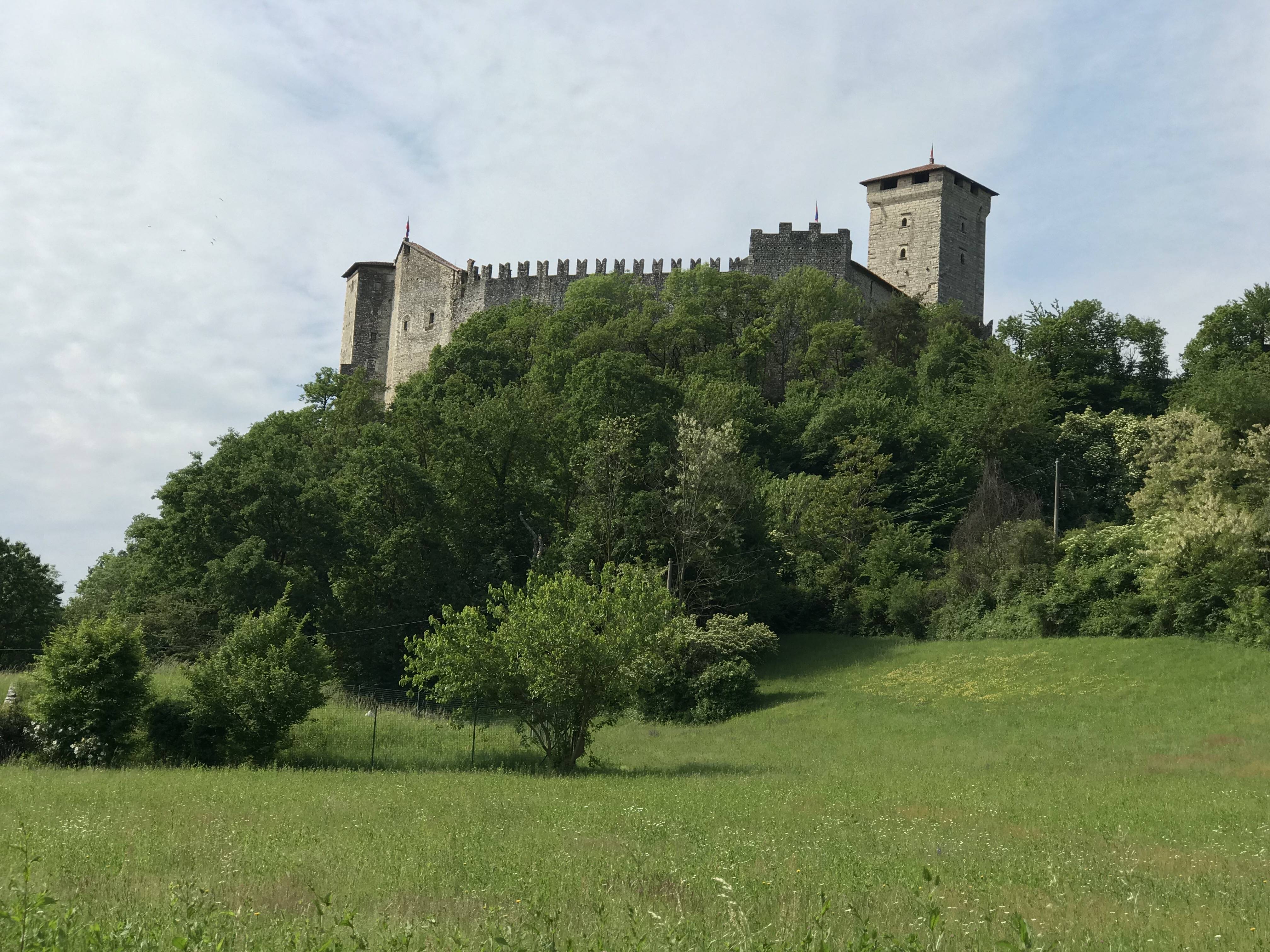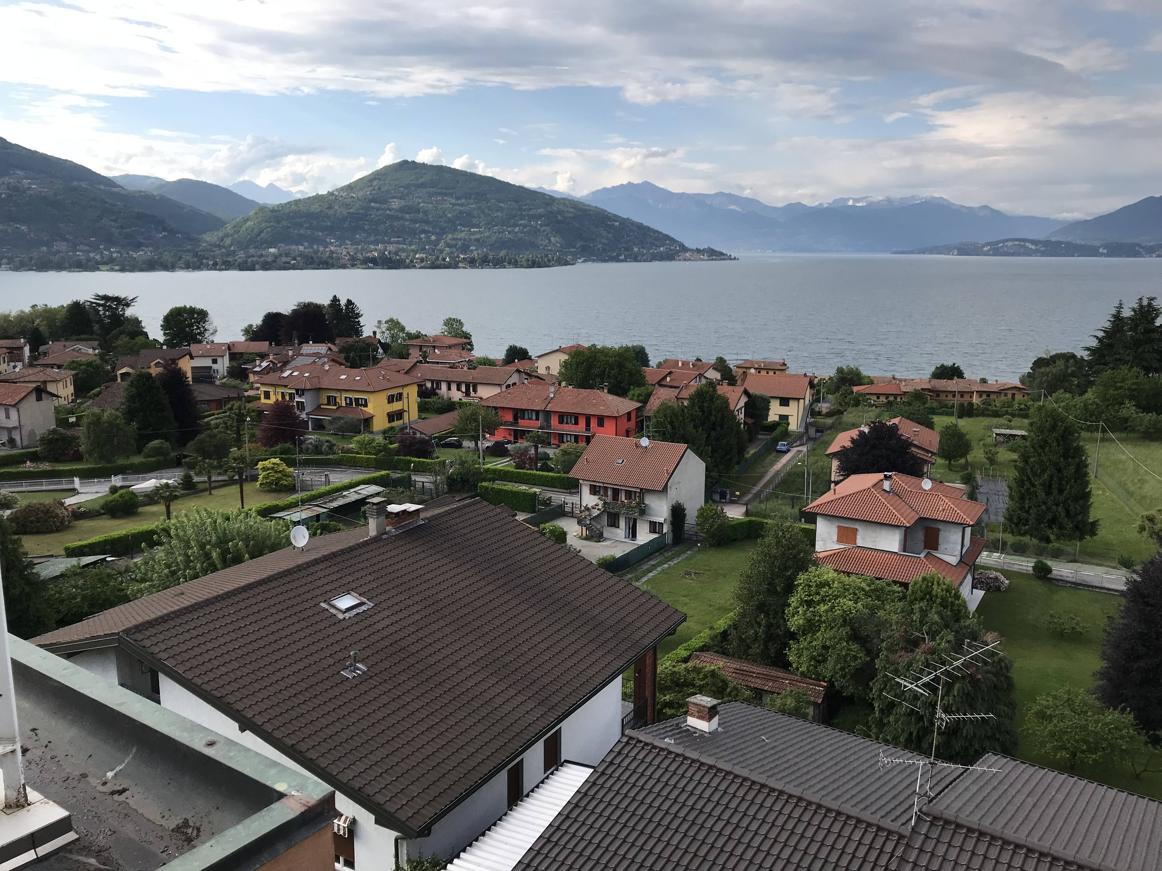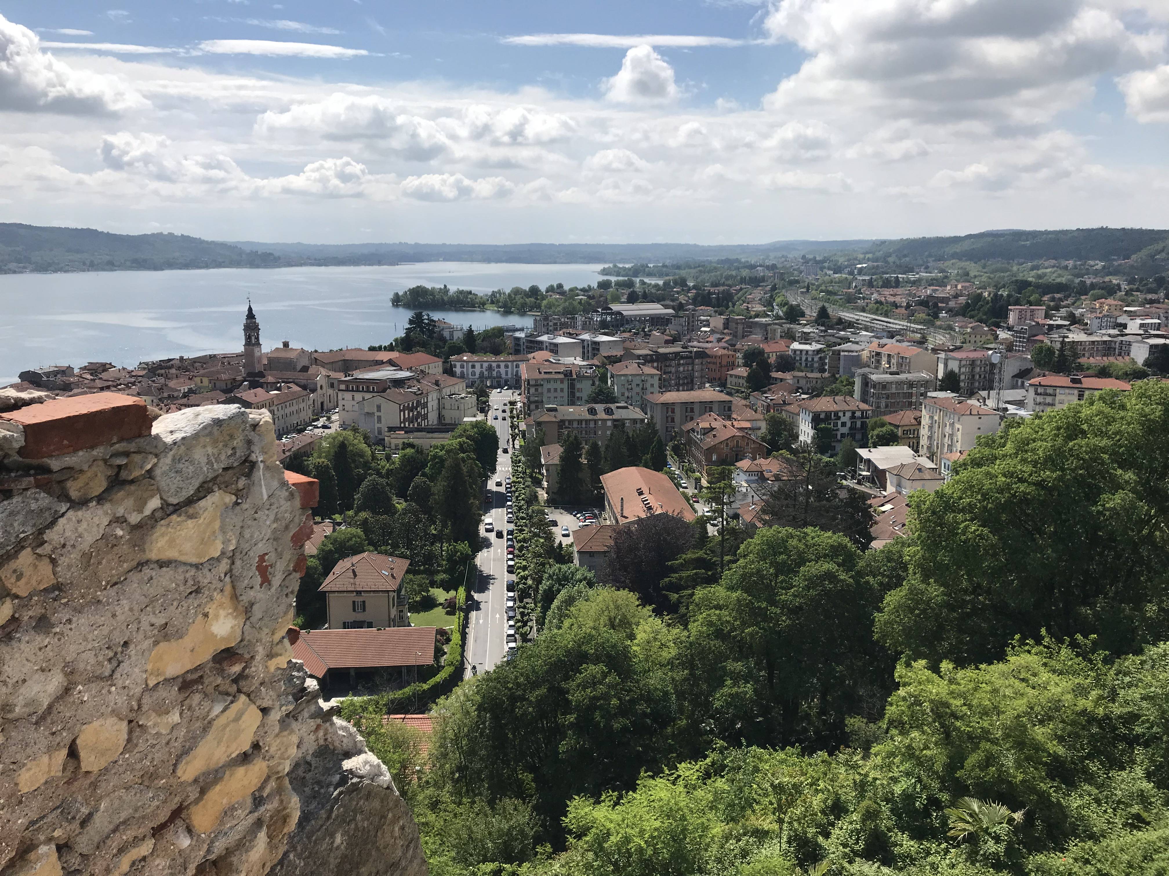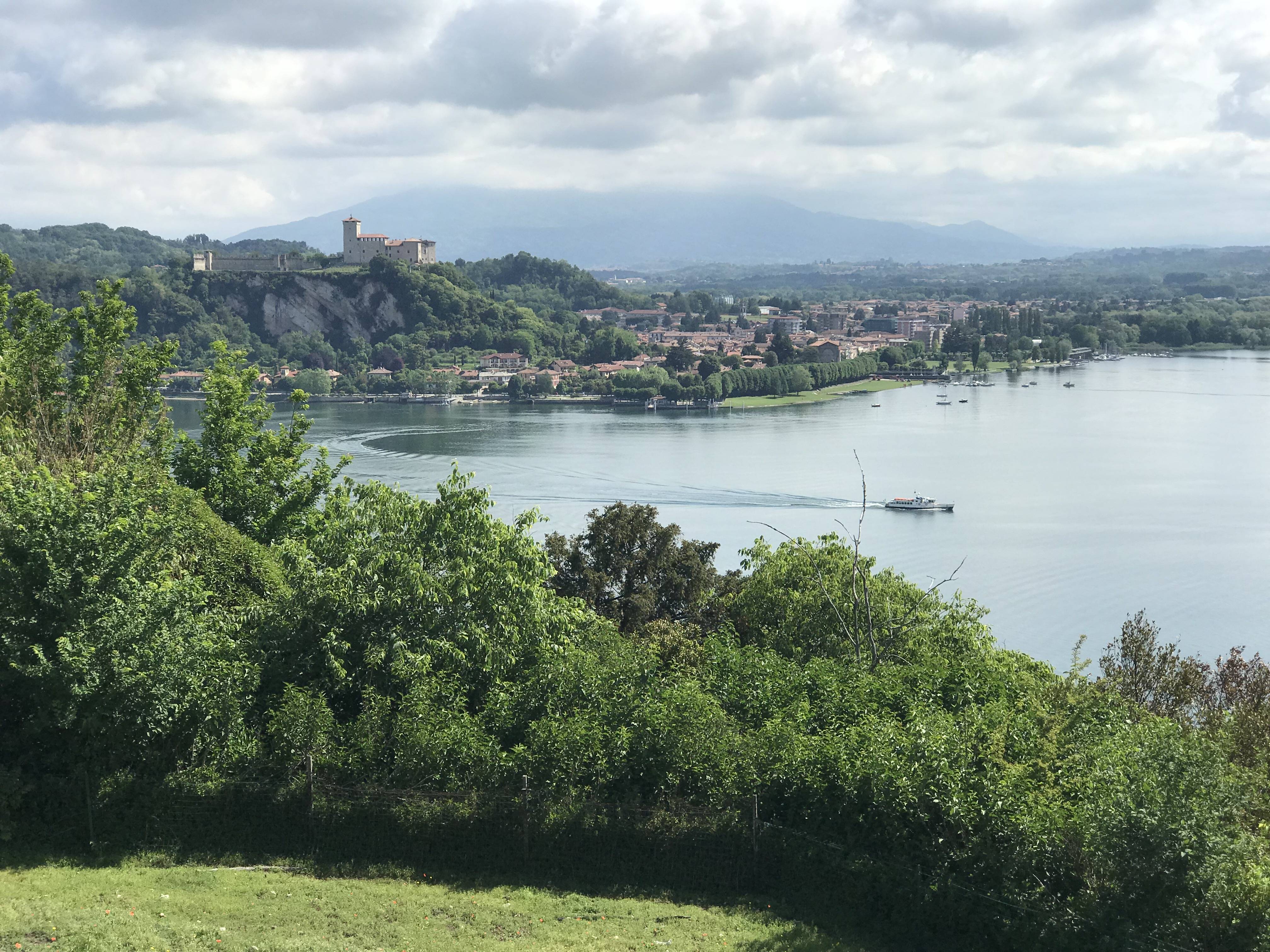 Toen we naar ons appartement reden namen we de weg die dicht langs het meer loopt aan de oostkant. Het was een prachtige rit. De wegen waren vaak smal en de dorpjes schilderachtig. Vanuit “ons” dorpje keken we uit op de ruïne van Arona, Rocco Borromeo.